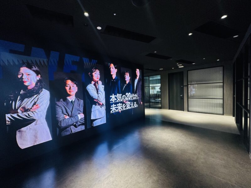 来訪者を迎えるエントランスには、ブランドメッセージを象徴するサイン・LEDビジョンを配置