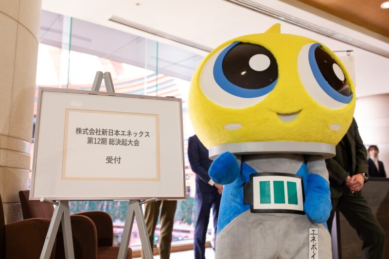 会場入り口では当社マスコットキャラクター「エネボーイ」が来場者の皆様をお迎えし、総決起大会の開幕にふさわしい和やかな雰囲気の中でスタートしました。