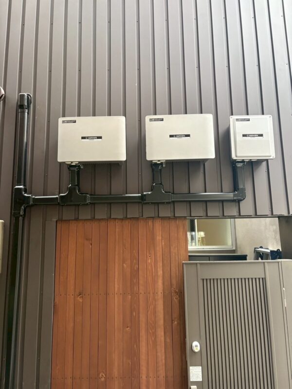 今回の工事では配管が露出する部分がありましたので、外観が不自然にならないように外壁と同系色の配管を使用いたしました。